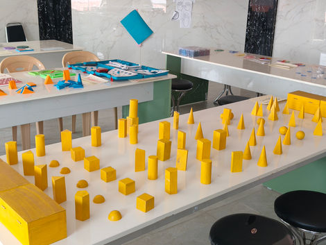 The lab is equipped with modular workstations, demonstration space, and organized storage for mathematical tools and resources. It includes a wide range of teaching aids such as geometry kits, algebra tiles, abacus, measurement tools, puzzles, and logical games to enhance conceptual understanding and problem-solving skills. Technology integration through smart boards, digital content, and online resources further enriches the learning experience.