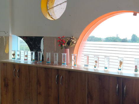 The laboratory is furnished with chemical-resistant workbenches, proper seating, a demonstration table with essential utilities, and secure storage units. It is equipped with essential Physics apparatus, Chemistry glassware and reagents, and Biology instruments such as microscopes and models, enabling hands-on experimentation. Adequate safety measures, including fire safety equipment, ventilation, and clear labeling, are strictly maintained.